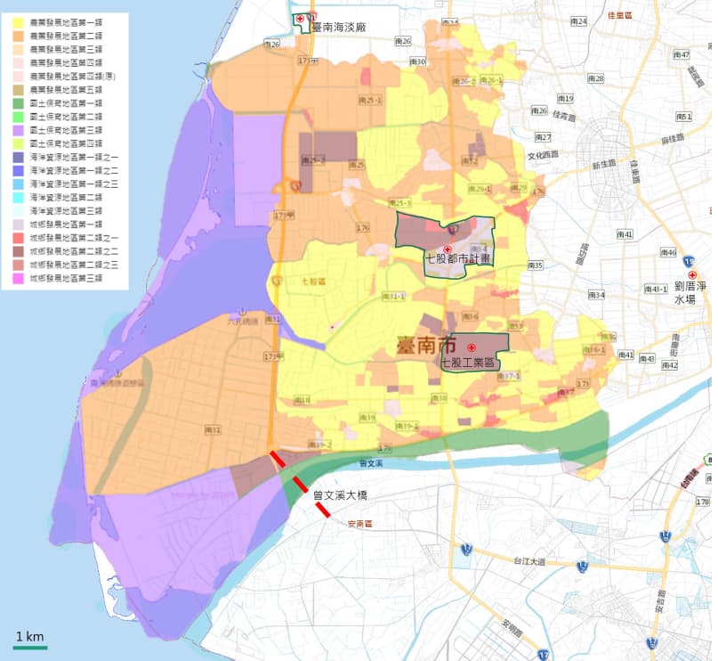 圖三、七股區國土功能分區及開發建設位置圖(資料來源:內政部國土管理署)。
